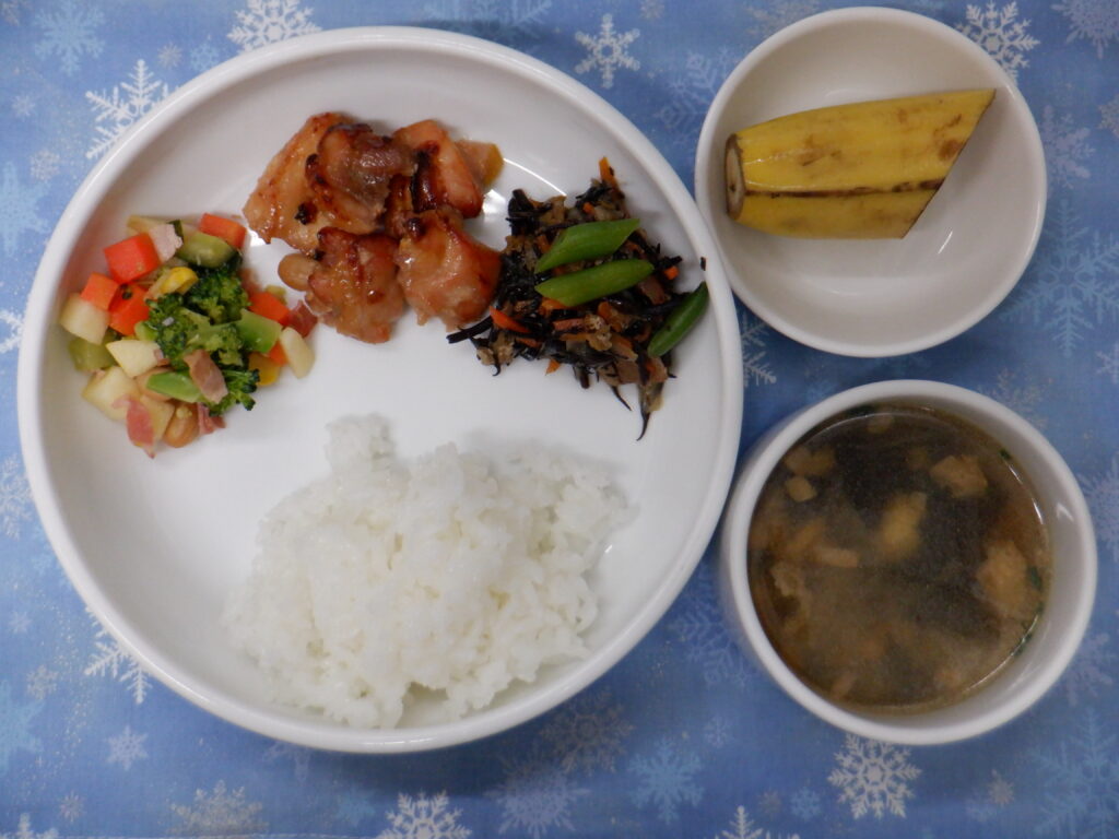今日は 卵・小麦・乳製品などのアレルギー食材を使用していない 全員が同じものを食べることができる給食です。
