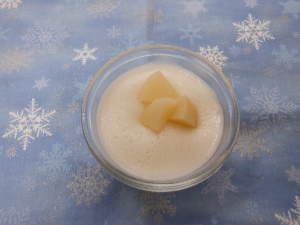 おやつは、桃のブラマンジェです。