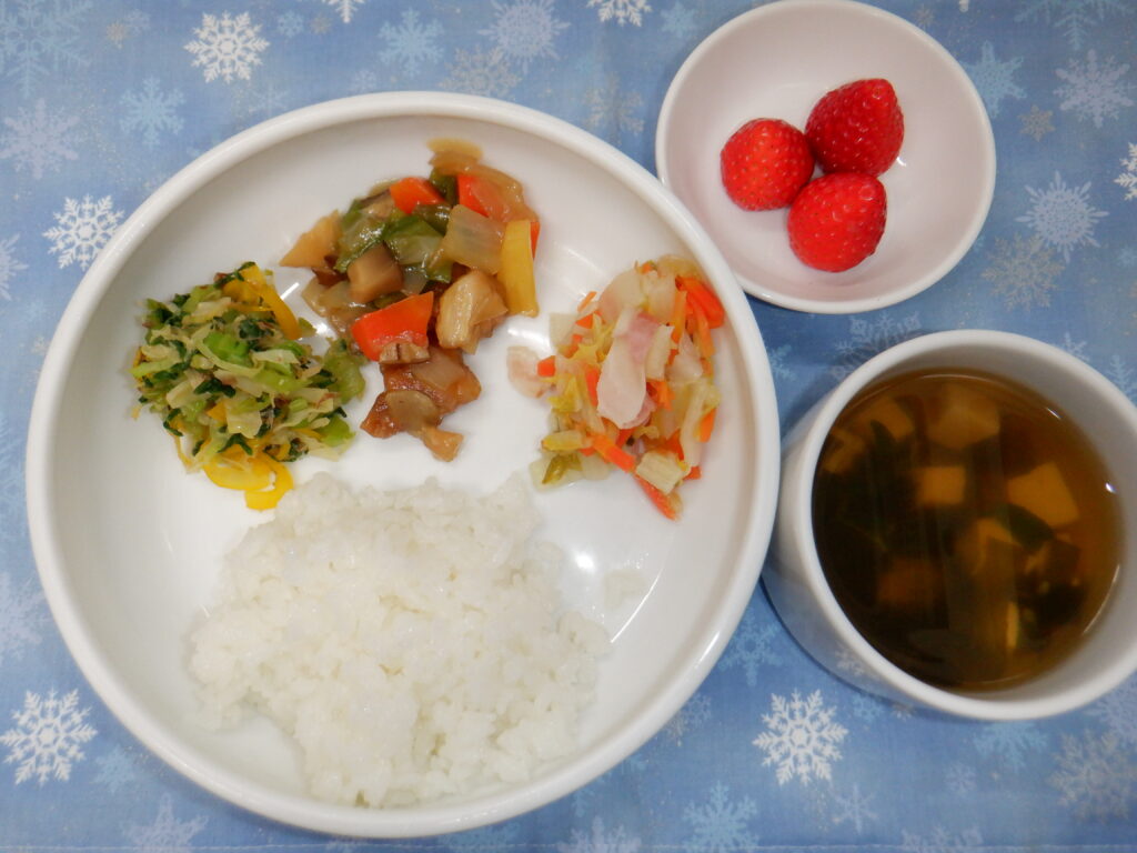 今日は 卵などのアレルギー食材を使用していない 全員が同じものを食べることができる給食です。
