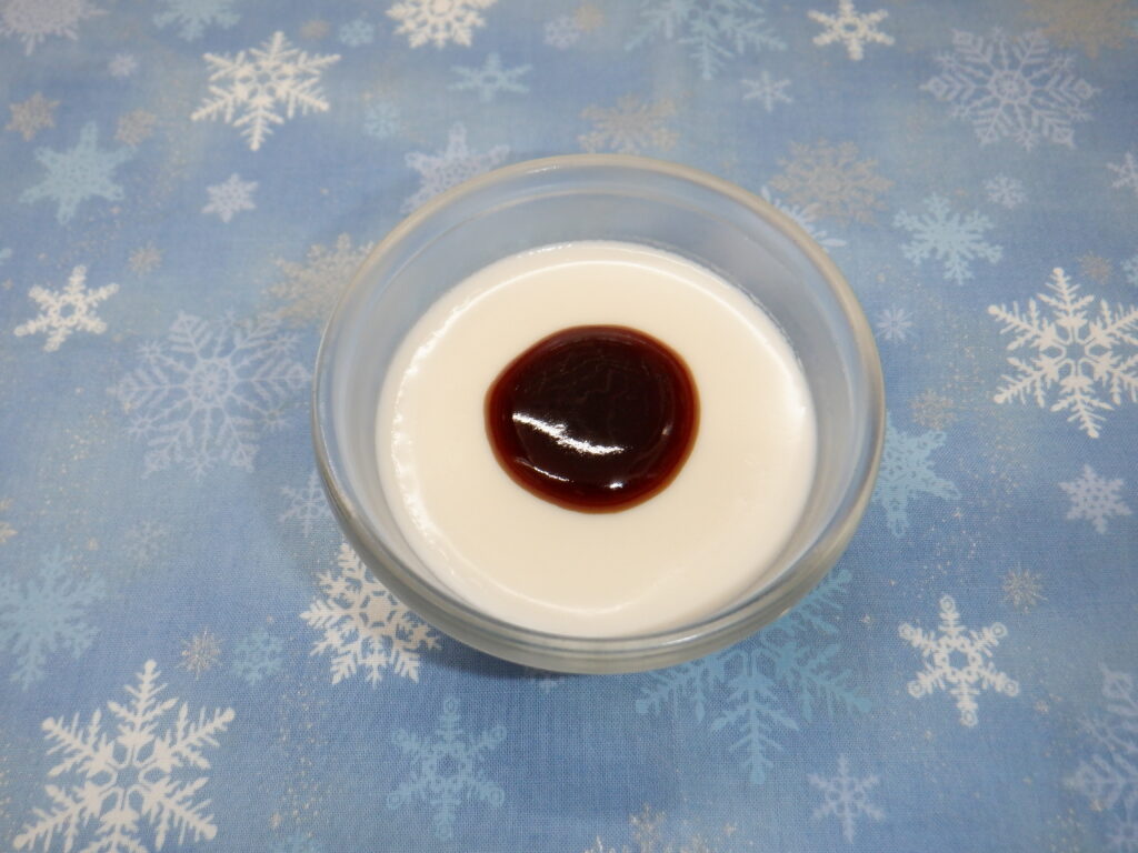 おやつは、黒蜜のパンナコッタです。