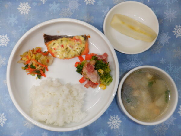 今日は 卵などのアレルギー食材を使用していない 全員が同じものを食べることができる給食です。